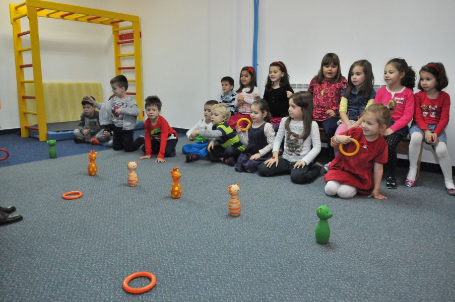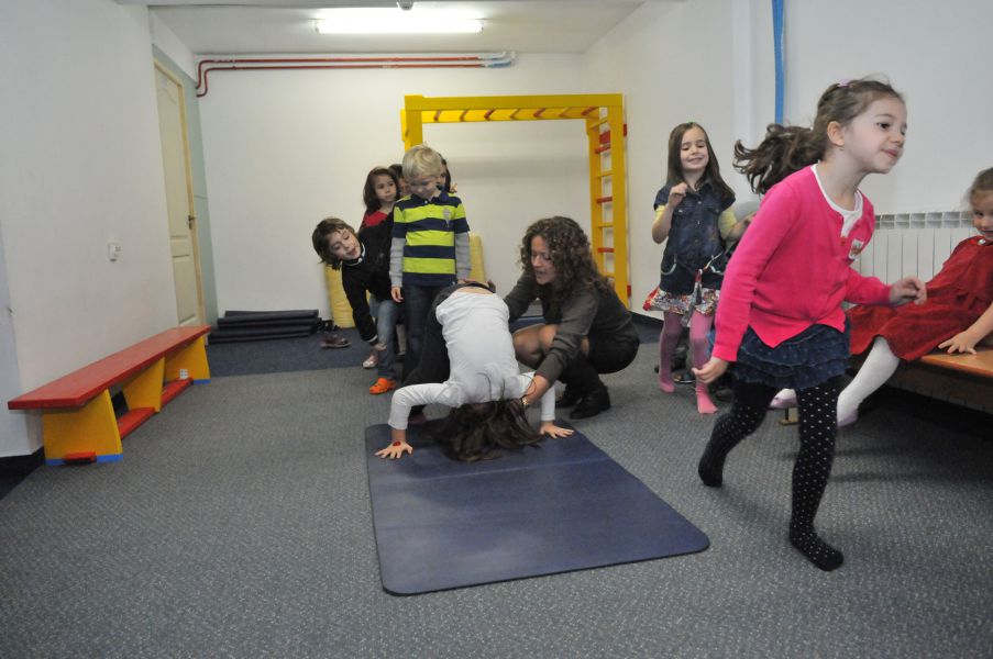 Sala de sport a grădiniţei este dotată conform Standardelor de dotare minimală, reglementate prin OM 3262/15.02.2006, dispunând de: